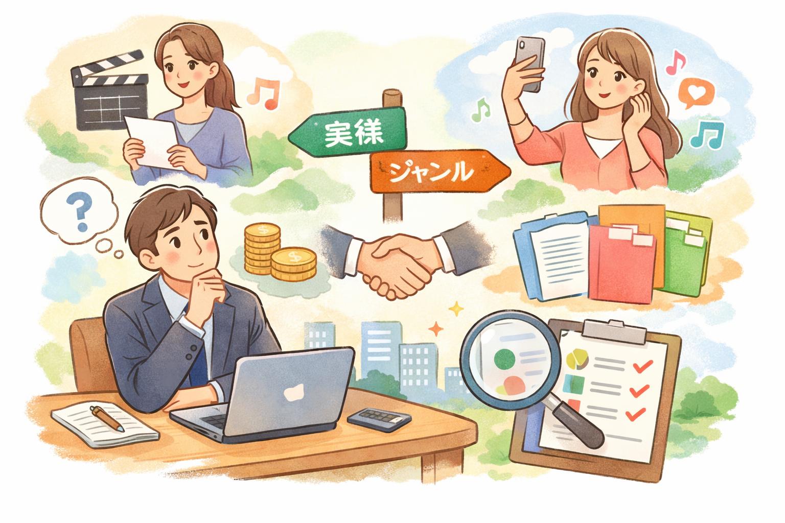 キャスティング会社には、それぞれ得意とするキャストのジャンルがあります。俳優やタレントに強い会社、モデルやインフルエンサー専門の会社、文化人や専門家に特化した会社など様々です。まずは、自社の広告やイベントの企画内容に、どのジャンルのキャストが最も適しているかを明確にしましょう。その上で、希望するジャンルのキャスティング実績が豊富な会社を選ぶことが、ミスマッチを防ぐための第一歩です。